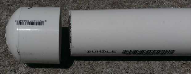 1. Cemento 3 tres tapas a los extremos de tres 3 independiente 1' pedazos de tubo de PVC. Si quieres que un área de almacenamiento para las estacas de tierra, no de cemento la tapa de cuarto para los cuarto 1' pedazo de tubo de PVC.
