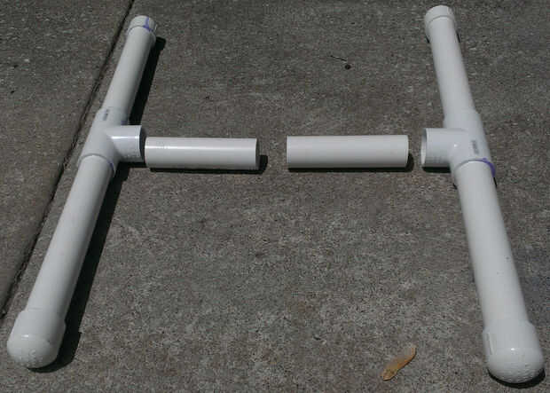 4. Conecte las piernas completadas 2 dos a cada lado de la restante conector "T". NO de cemento estos juntos todavía.