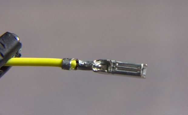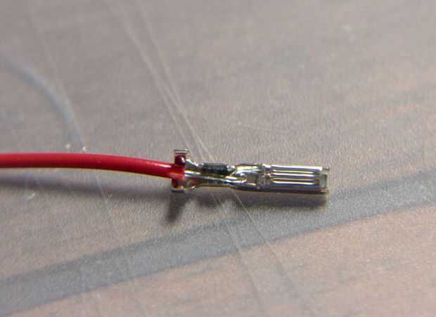 - Doble los cables a los conectores de metal, ver fotos 6 y 7, asegúrese de que el cable esté ajustado, si lo haces bien de que la conexión debe ser mejor que la soldadura, si eres muy paranoico que puede Agregar una gota soldadura.