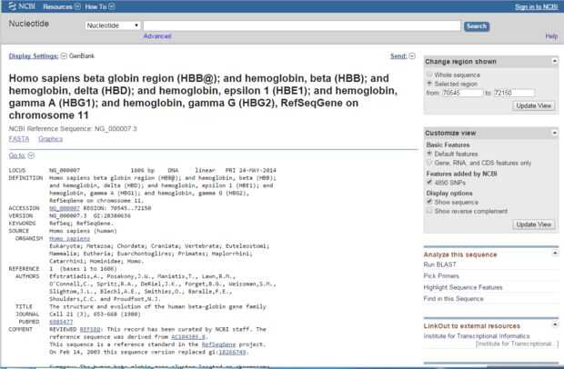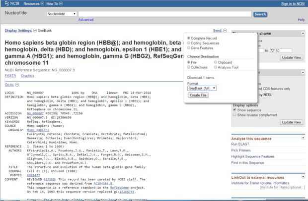Para descargar la secuencia de referencia (ya sea para diseñar cebadores contra él de los pasos anteriores o para alinear en este paso) encontrar el gene que busca en la base de datos del Gene en el NCBI. Al hacer clic en el gen grabar Desplácese hacia abajo hasta la sección "Secuencias de Referencia NCBI (RefSeq)" y seleccione el vínculo 'GenBank' bajo la RefSeqGene 'Genómica'. Esto le llevará a la GenBank secuencia (sexta foto) donde se puede descargar la secuencia de referencia haciendo clic en el menú desplegable junto a 'Enviar' (cuadro VII).