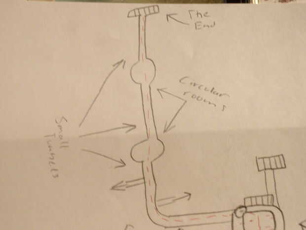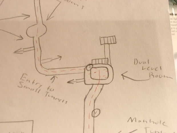 -Esta habitación en el tramo final del sistema. los túneles que alimentan en él tienen diferentes elevaciones.