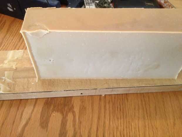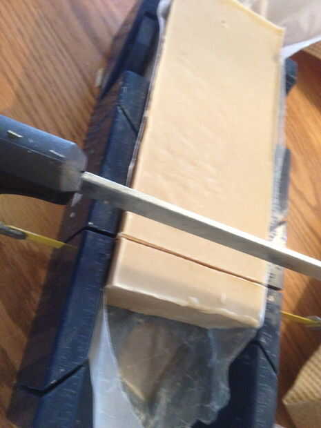 Con este jabón caja de molde, simplemente eliminas uno de los lados y deslice la barra de jabón hacia fuera y en una tabla de cortar u otra superficie dura. Como he mencionado, este molde permite colocar el jabón en una caja estándar de inglete para guiar el corte y hacer incluso e igualmente tamaño barras, utilizo la sierra que viene con esto. caja de ingletes de 2,99 $, pero en este momento el jabón se rebana como mantequilla - para que funcione cualquier filo filo fino. No necesitas una sierra.