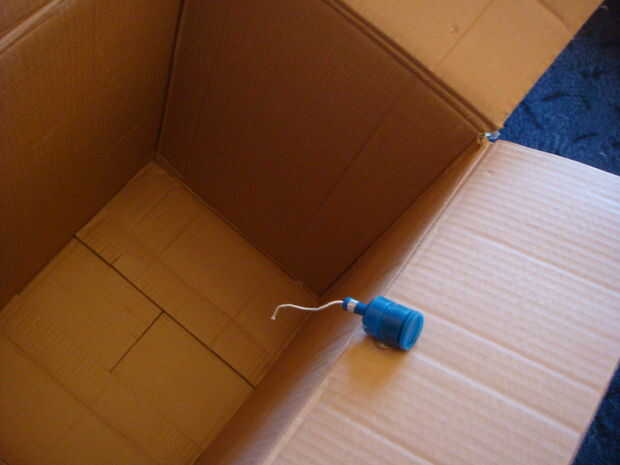 • Aplique pegamento en el lado de lo popper del partido y colocar al borde de una de las solapas de la caja con la cadena hacia el interior de la caja. Importante: (Pegue el popper del partido unos 2cm desde el borde de la aleta, para cerrar correctamente la tapa de la caja).
