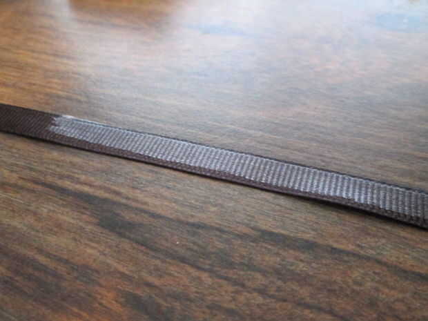 Paso final. Coloque la cinta hacia fuera de plano sobre la mesa. Aplique la cinta de doble palo en la parte trasera (si existe) de la cinta. Colocar la cinta alrededor de los lados de la tapa con los extremos en el centro de un lado se llama frente. Un nudo cuadrado y recortar las colas de la cinta.
