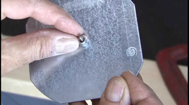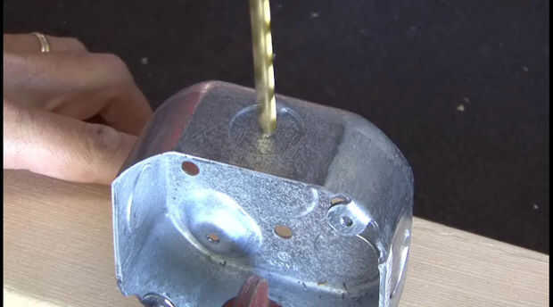 2. Perfore otro agujero en el lado de la caja eléctrica e Inserte una arandela de goma (opcional). Luego enrosque el cable de la lámpara en la caja y haga un nudo para que no tire de la cuerda.