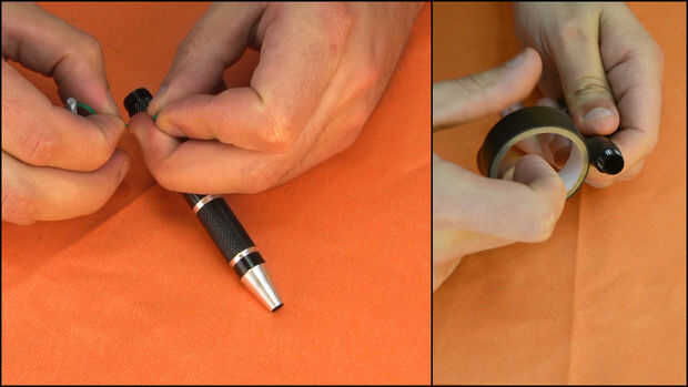 Ató el otro extremo de una banda elástica para el destornillador y envuelto con una cinta aislante.