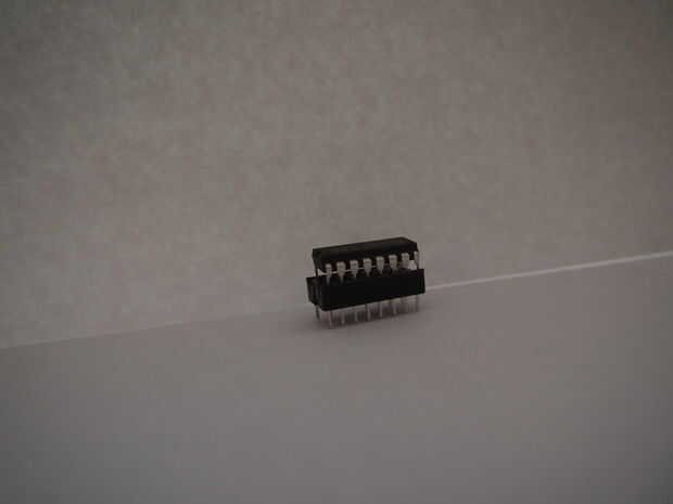 Esta es la parte más delicada de su circuito. ICs (circuitos integrados) tienen patas muy frágiles y es importante que no se rompen. Puede soldar el zócalo del IC en el circuito y luego fije la IC a la toma de corriente, o puede colocar el IC a la toma y luego soldar el zócalo a la Junta. Me gustaria hacer este último. Si decide hacerlo así, entonces usted debe Asegúrese de que todas las patas del IC se alinean con las placas en el zócalo, y que los rincones de la IC y la IC se colocan uno encima del otro cuando se observa desde una vista lateral. Luego empuje el IC en el zócalo del IC para que ya no puede ver las piernas. Asegúrese de no romper ninguna de las piernas y que las patas estén en cada plato! Línea de los rincones de la IC y la IC al "rincón" en la fotografía de la Junta en el lugar de la IC. Cuando suelda el IC zócalos sobre la placa, los cables son lo suficientemente cortos como para que no tienes que doblarlas. Mientras que esto significa que no tienes que cortar los cables cuando haya terminado de soldar, el zócalo del IC puede fácilmente caerse. Sugiero que suelda sobre un contador en vez de ayudar a las manos para que el zócalo del IC está tocando una superficie y no puede salir fácilmente.