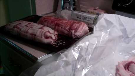 Su rollo y colóquelo en una bandeja para galletas sin enmantecar (sí, usted necesita haber levantado los bordes para contener jugos) con el lado de la costura hacia abajo.  Quitar la envoltura plástica.  Duh.