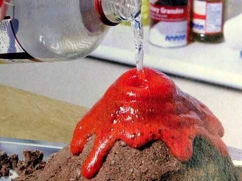 Cuando la mezcla ya parece que "lava" vierta la mezcla en el recipiente en el medio de tu volcán.