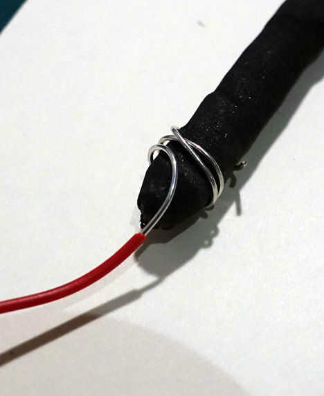 Envolver un alambre alrededor del extremo de cada electrodo y conéctelos a los terminales positivo y negativo de la fuente de alimentación.