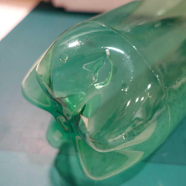 Use lo que le parece una cantidad excesiva de pegamento caliente para sellar completamente los orificios en la botella, dejando los cables que se arrastra hacia fuera. Nunca puede tener demasiado pegamento caliente.