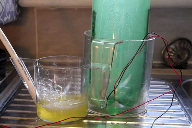 Para conducir el punto de Inicio: si realmente estás haciendo esto, por favor tener mucho cuidado. No utilice cualquier vasos que pueden romperse. Que la mezcla de hidrógeno/oxígeno lejos de llamas, fuentes de calor ni aparatos eléctricos. Las chispas incluso estáticas de la ropa potencialmente podrían inflamar estos gases. Hacen en pequeñas cantidades y asegúrese de que saber donde están. Cubrir las partes esponjosas del mismo considera digno de protección.