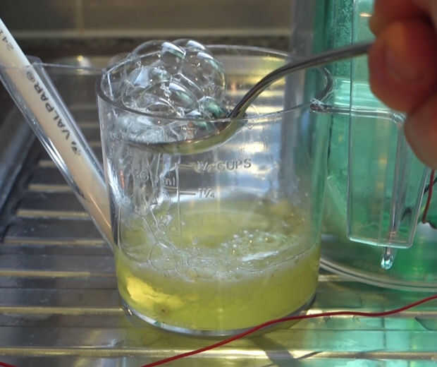 título del experimento: Mad Midori SourFecha: 01/02/2012Nombre (s): Cluracon + química CeriResumen: el loco midori sour es un giro científico a un cóctel clásico. Combinando la fluorescencia de B12 y la quinina con la gloria efervescente de un volcán