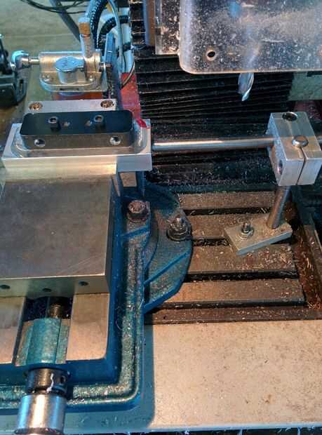 Tenga en cuenta la Dykem rojo en la parte superior derecha de la lámpara. Esto nos permite salir de la prensa y lo pones de nuevo con la orientación correcta. También tenga en cuenta la barra de alineación. El molino se pone a cero para que la parte es cero cuando es la lámpara y la luminaria es ceñida al cuerpo que la barra.