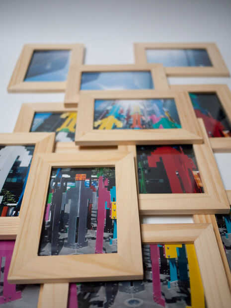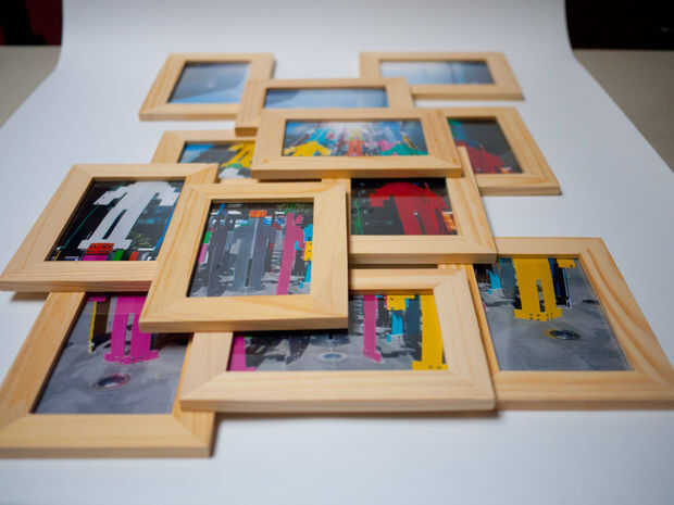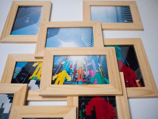 utilicé pegamento Gorilla para unir todos los marcos. Con la pila de la forma que desee, cuidadosamente recoger una imagen, Aplique pegamento en la parte inferior y pegar hacia abajo. Repita hasta que todo esté pegado junto.