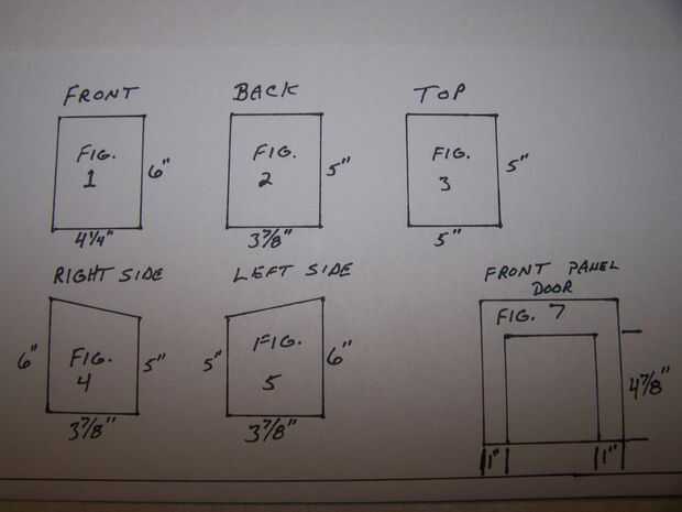 Paso 1: Cortar 1/4" madera contrachapada parte delantera, parte trasera, parte superior y lados de dimensiones en las figuras 1, 2, 3, 4, 5.