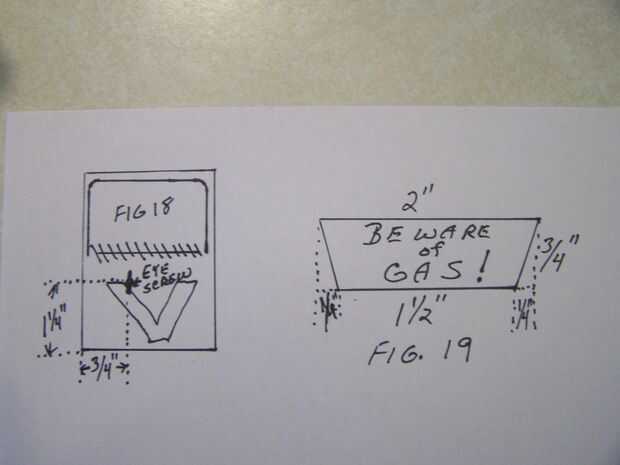 Paso 9: Haga señal de "Cuidado de GAS". Utilizar madera de balsa delgada o fina cartulina corta como se muestra en la figura 19. Pegamento 1/4 "x 2" madera espiga a la parte posterior de la señal ras superior extendiéndose más allá de la parte inferior. Después de pegamento está seco, cola sesión en lado izquierdo de la letrina y pegar unas piedras alrededor de la base. Ver las fotos.