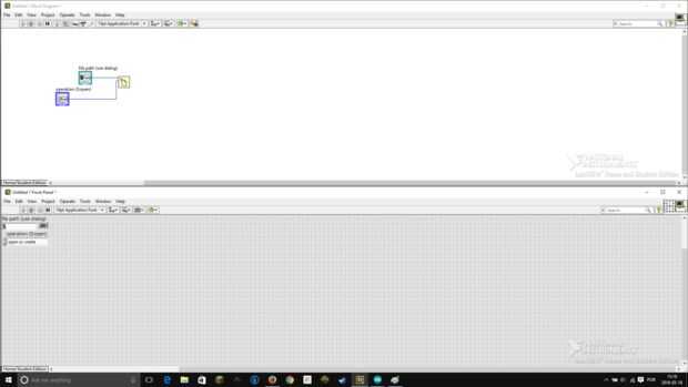 Para controlar o comportamento do bloco, pandilla com o botão direito em «funcionamiento» (de logo abaixo "ruta del archivo") e crie um controle. Mude esse controle para "abrir o crear" sin Panel frontal (un janela onde ficam os componentes, não o programa).