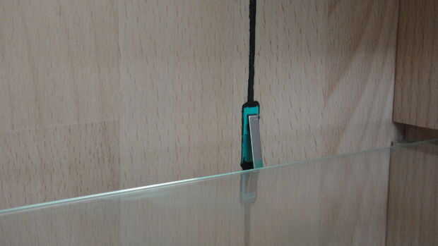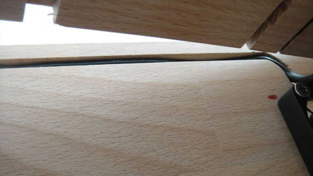 Si no quiere quedar atrapados en el vidrio como se está moviendo en los cables, puede esconder cables de conexión en una ranura que será cubierto por otra pieza de madera.