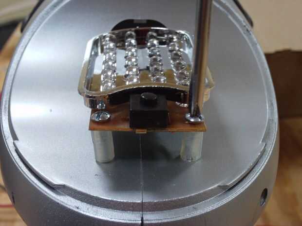 Hice algunos espaciadores de tubos para mantener nivel del clúster y utiliza algunos tornillos de metal largo flaco para sujetar a la carcasa de la linterna. Las imágenes muestran cómo se llevó a cabo en el lugar. Lo único por hacer es que vuelva a la tapa del difusor en.