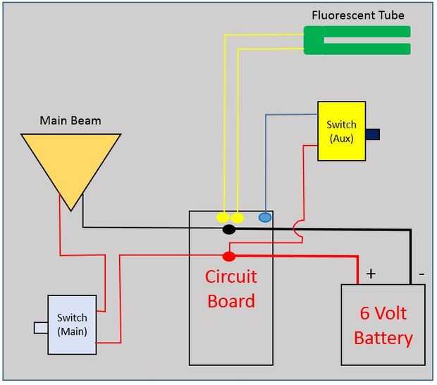 El cableado de los focos del estudio. El interruptor del circuito fluorescente se alimenta desde el cable positivo y vuelve a la placa de circuito. Dos cables de la placa de circuito de alimentación típicamente el bulbo fluorescente. El nuevo LED va a necesitar energía directamente de la batería. Tenemos que quitar todos los cables a y desde el circuito fluorescente.