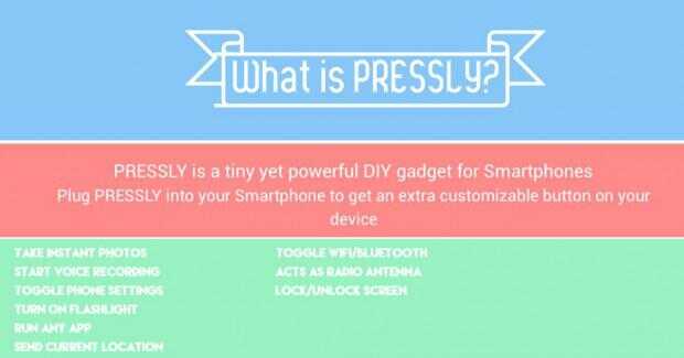 Teclas más físicas han sido perseguidas de teléfonos, gracias a la subida desenfrenada de tecnología de pantalla táctil, pero aquí es un proyecto DIY que quiere traer un tipo más inteligente de llave física a su teléfono inteligente. Pressly es un botón de hardware conectado a una toma de audio macho 3,5 mm que se conecta a los auriculares de su teléfono inteligente o tableta. Es compatible con plataformas Android y iOS(Jailbreak required). Así, por ejemplo, si siempre quisiste un atajo para sacar una fotografía y subirla directamente a una red social puede crear esa función en la aplicación que a Pressly. Por supuesto que hay aplicaciones que pueden hacer este tipo de cosas, pero el punto de Pressly es que es un pedazo de hardware que se encuentra a poca distancia de los dedos, lo corte hacia abajo en el número de acciones necesarias para llevar a cabo la función que buscas. Pressly es compatible con un número de aplicaciones más cotizadas en el Instructable.