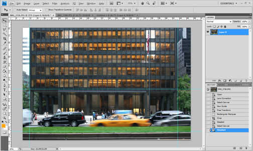 b. utilice los deslizadores de perspectiva Horizontal y Vertical para ajustar y alinear los bordes con la rejilla. No todo puede alinear por lo que es otra opción para utilizar después de la herramienta de corrección de lente
