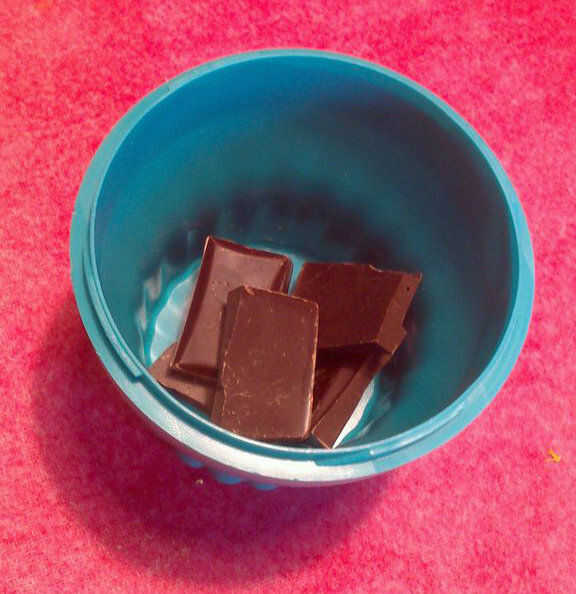 OK, ponga 5 cuadrados de chocolate en el molde.