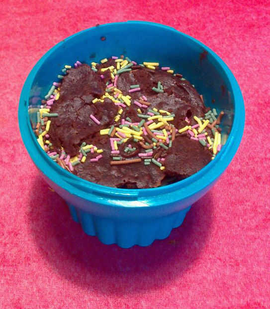 Parte más difícil: esperar! Dejamos que se enfríe un poco, luego agregar alguna decoración en él. Puedes desmoldarlo, o comerlo directamente en el molde. Hacer como quieras!