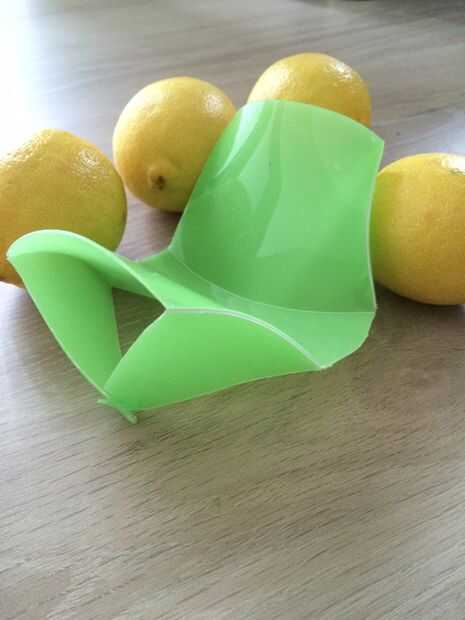 Diseñé un flatpack exprimidor de limones y naranjas. Consta de 2 hojas de polipropileno azul.Es fácil de hacer y fáciles de construir debido a que sólo hay 2 partes en este exprimidor. El extractor es bastante más plano lleno y ecológico. Es más ecol