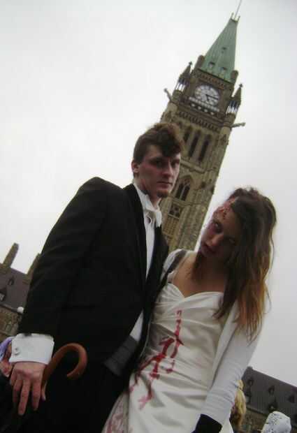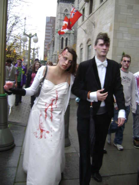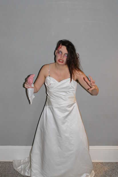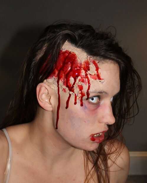 Justo antes de caminar fuera de la puerta, añadir globos de sangre falsa para el cerebro, para completar el look.