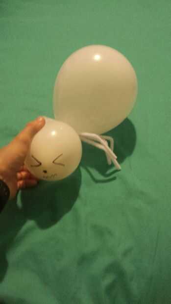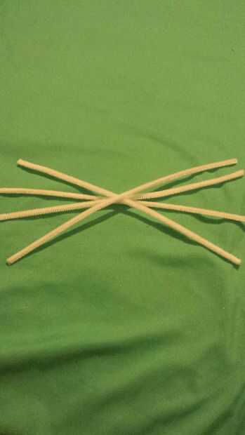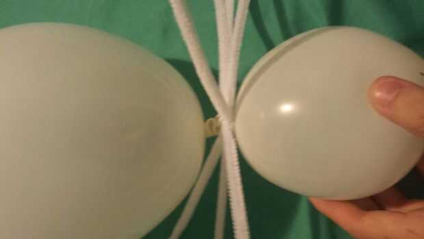 Tomar los limpiapipas y colocarlos unos sobre otros y tuerza en el centro. Junte las dos cantoneras de los globos y coloque el conjunto trenzado de limpiadores de pipa en el centro. Gire el conjunto alrededor de una vez y por último doblar los extremos del limpiador de pipa que se asemejan a las piernas.