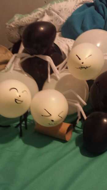 Enjuague, espuma, repita hasta que usted tenga un nido entero de ellos. Mezclar los colores, dibujar caras cursi y añadir rellenos diferentes a ellos. Use un marcador de color brillante para los globos negros que pueden tener un tiempo duro ver la cara.