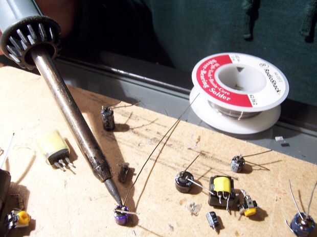 Tomar de su componente. Sujetarla con las puntas hacia arriba. Ahora soldar un trozo de soldadura una pulgada y media más o menos en uno de los conductores. Repita en el otro. Si sabes que es positivo y negativo, acortar una de ellas. La mayor parte es que no tienes que soldarlos en vertical, ya que la soldadura es tan flexible. Para soldarlos en horizontal, que hace la vida mucho más fácil. Una cosa a tener en cuenta es que tiene rotura de la soldadura si se curva demasiado, así que asegúrese de tener cuidado cuando se conecte a la placa y tire de ella. Sólo estoy mostrando con los condensadores, pero lo he hecho con éxito con interruptores, resistencias y todo tipo de componentes.
