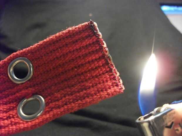 Después de cortar la correa, quemar con un mechero para evitar que se deshilache. Usted necesita quemar ambos cinturones: el cinturón y la correa de la corte en la bolsa así.