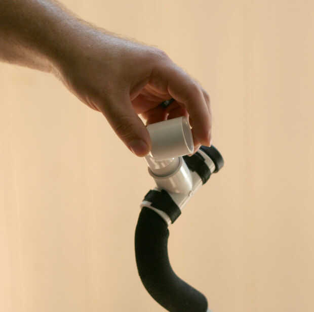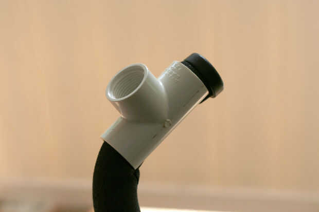 Por último, atornillar en los codos. No te preocupes atornillándolas a fondo como sea posible. Solo les dan unas vueltas, hasta que comience poniendo más difícil al girar. Luego mirar donde están apuntando. Necesita los extremos abiertos de los codos para estar apuntando uno hacia el otro. Si se puede seguir apretando los codos hasta que enfrentan la manera correcta, gran. Si tienes que aflojarlos un poco conseguirlos correctamente colocado, también está bien.