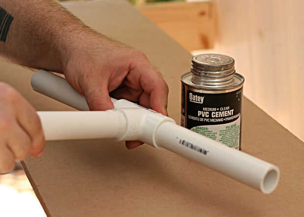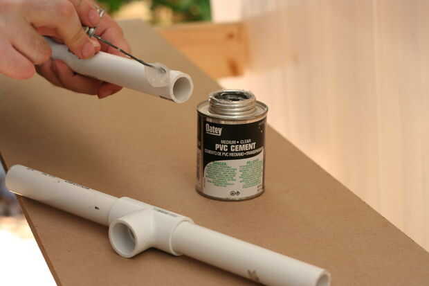 Esta es la única pieza que tendrás que pegar. He tenido el mango de extensión salir conmigo varias veces, generalmente al caminar cuesta abajo. Como esto no es trabajo de plomería real, puede omitir el paso de limpieza y la cabeza recta en cementación. Aplicar una buena cantidad de pegamento durante la última pulgada del extremo que se sienta en el tee. Inserte el mango de extensión en la t mientras gira para asegurar una buena adherencia. Limpie cualquier acceso. La extensión es ahora segura.