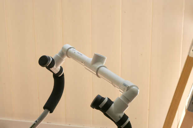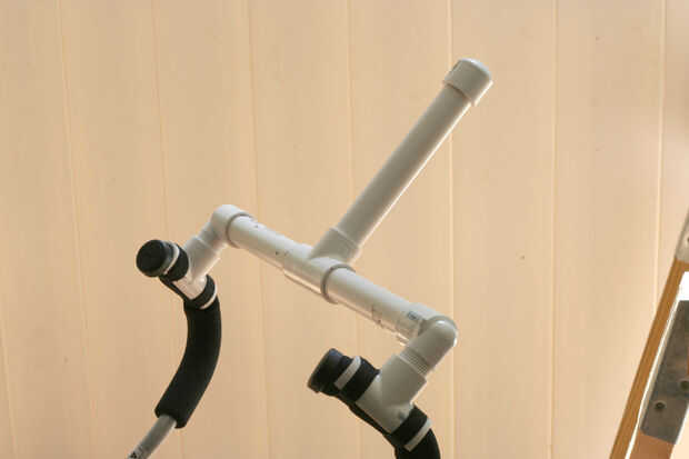 Instale la t entre las dos piezas de tubería que acaba de crear. El mango debe ser robusto una vez más, pero ahora cuenta con una toma para otra pieza de tubería. Inserte el tubo restante que tiene la t en el mango. Cuánto tiempo para hacer este bit es preferencia personal, como las manos de todos son de distintos tamaños. Sujete el tubo con una mano. Dése un espacio adicional para el ajuste de su agarre y comodidad y marcar el tubo. Corte en su marca y vuelva a insertar el tubo. Agregar la tapa en el extremo para darle un aspecto más acabado.