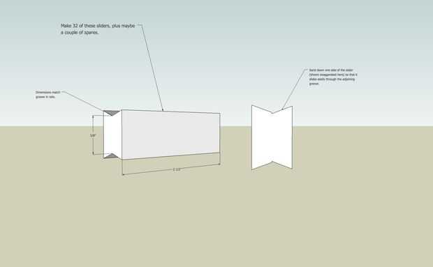 Sugerencia: hacer la mitad de estos deslizadores sólo un poco más que otras, tal vez 1/8". Esto hará que montaje final mucho más fácil cuando llegue el momento.