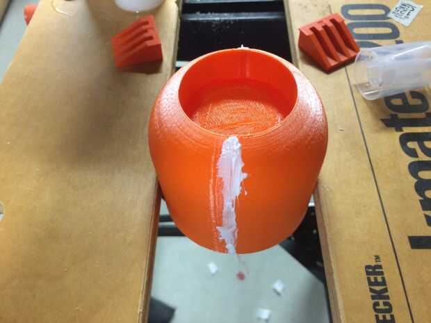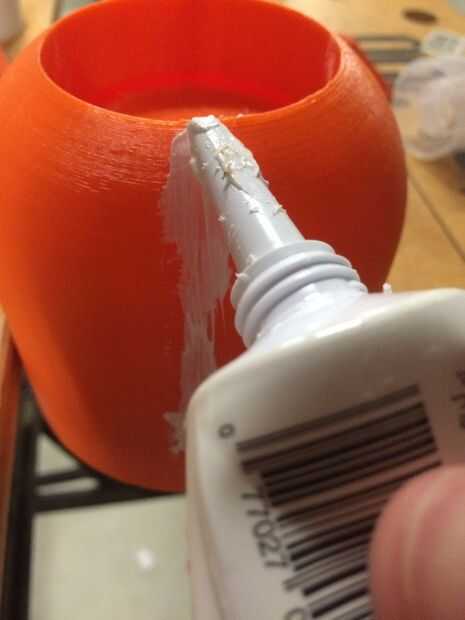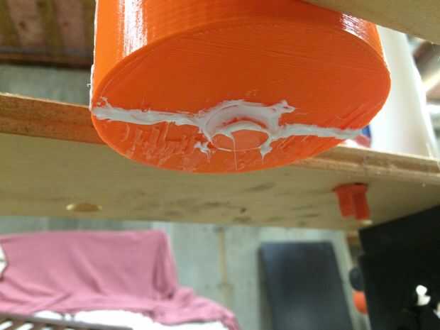 Empieza por tomar los dos exteriores y piezas de la base del molde y armar como se muestra en las fotos. Las dos piezas exteriores encajan entre sí para hacer un cilindro y la base se ajusta entre ellos. Tomar el molde montado y fijarlo en el tornillo, asegurándose de que nada consigue desalineada. Luego, tomar la silicona de GE y difundirlo en las costuras del molde. Asegurándose de que cada crack es sellado como se muestra en la imagen. Deje que la curación GE silicona durante unos 30 minutos.