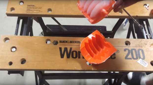 Tomar el molde de la prensa. Con los dedos y el pequeño flathead destornillador, raspar y despegar la silicona de GE alrededor de las costuras del molde. Una vez más de él es despejó lejos, usar la gran plana Destornillador para abrir el molde. Ir lento y trabajar su manera alrededor de las costuras del molde. Después de que un lado puede ser halado, utilice sus dedos para tirar de la silicona del molde de la parte del molde. Ahora, todo lo que queda por hacer en este paso es sacar el molde de la base. Para hacer esto, pruebe y vuelva la silicona con el fin de empujar el núcleo hacia fuera. También puede ser útil romper trozos de la base y tire de la silicona.