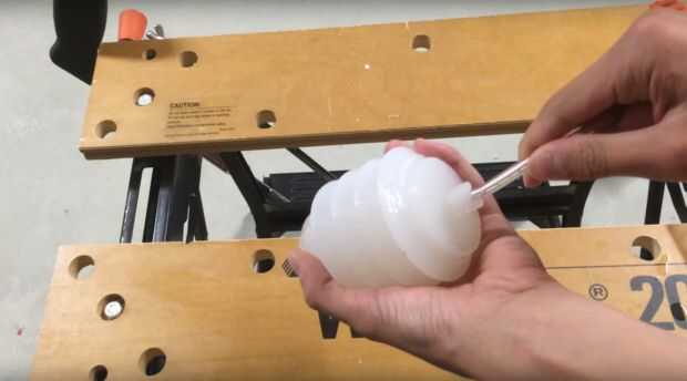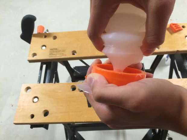 Tire de la pieza ya totalmente moldeado de silicona de molde adaptador. Toma la gran cabeza plana Destornillador y empuje a través de la abertura para limpiar el interior de la tubería. Inserte el tubo en el actuador y asegúrelo con la amarra. Ahora puede conectar su actuador que se extiende de nuevo a su fuente de aire y probar!