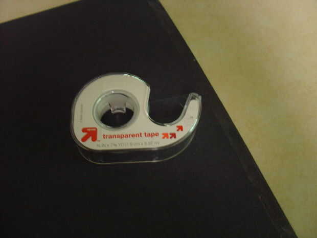 Cinta los bordes del tagboard cerrados.  Usé un pedazo largo en cada lado-no necesita ir a las esquinas, o envuélvalo como él va a través del correo.  Sólo tiene que estar plana y cerrada.  Ahora tienes una pieza bonita, rígida en su stand de música!