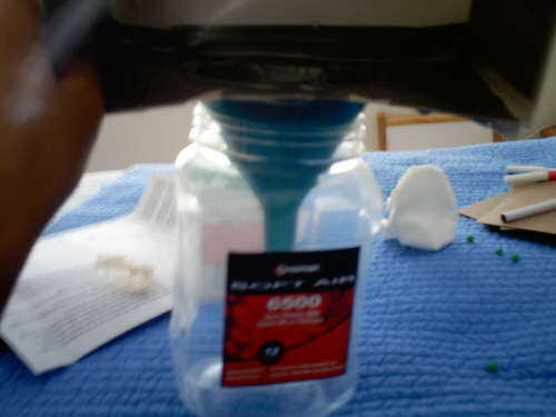 a continuación, coloque el embudo en el cubo.