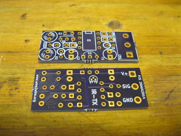 Retire la tarjeta de TX IR cruda como se muestra arriba. La tarjeta superior de la foto es el componente superior de la tarjeta. La imagen inferior es la parte de soldadura.