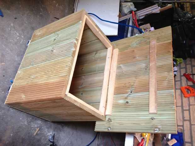 Como pueden ver usé una pieza más para la tapa entonces utilicé en el lado largo de la caja, esto que lo hice por lo que la tapa sería más grande y la caja para una mejor apariencia y funcionalidad. Puso las 3 piezas medianas encima de la caja y la viga en cual sería estar atornilladas por debajo de las tablas para que las cosas en la posición (centrada) y las vigas de la tapa encajará muy bien en el borde de la caja, esto lo hice para ambos lados de la tapa (segunda cara era más fácil porque los tablones ya donde algo en lugar y atornillados a un lado).