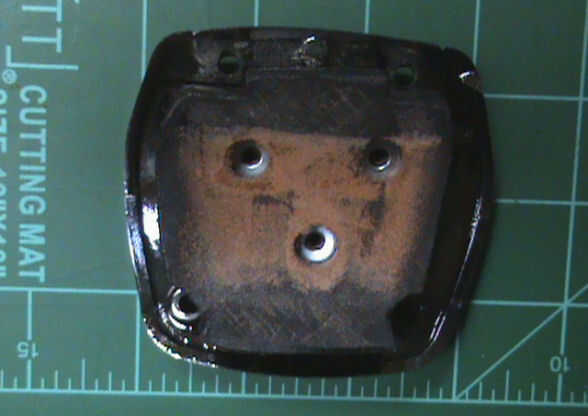 Centro la cuadra de cuero en la nueva cubierta pedal de piloto. Use la dremel o una amoladora para hacer el bloque de cuero sentarse a ras con la cubierta del piloto. Asegúrese de que hay espacio para los agujeros de tornillo exterior.