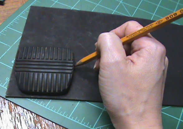 Retire la cubierta del pedal de goma de su embrague. Con la cubierta de goma como plantilla, traza la forma con un lápiz en el cordón de cuero. Repita hasta que se llega a la altura de la extensión. 9 capas le da sobre una elevación de 1 1/4 a 1 1/2".