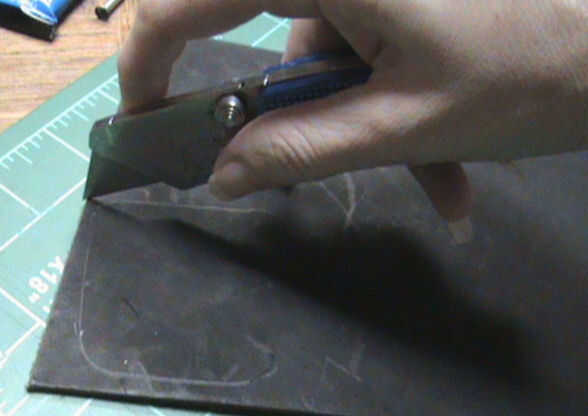 Puntuación de ambos lados de las piezas de cuero con un Dremel o cuchillo.