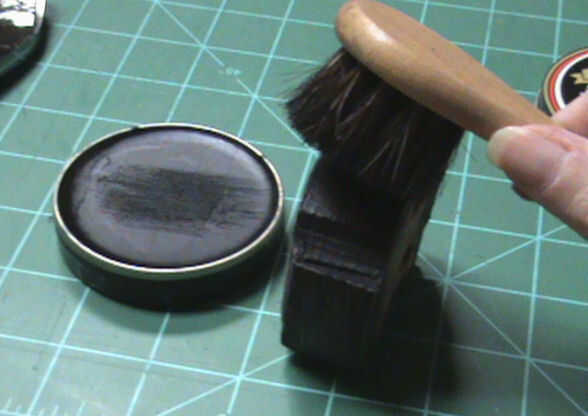 Utilizando un paño o cepillo, ponga betún en los bordes del bloque o ' cuero. Frote vigorosamente para derretir y sellar los bordes y crear un brillo agradable.